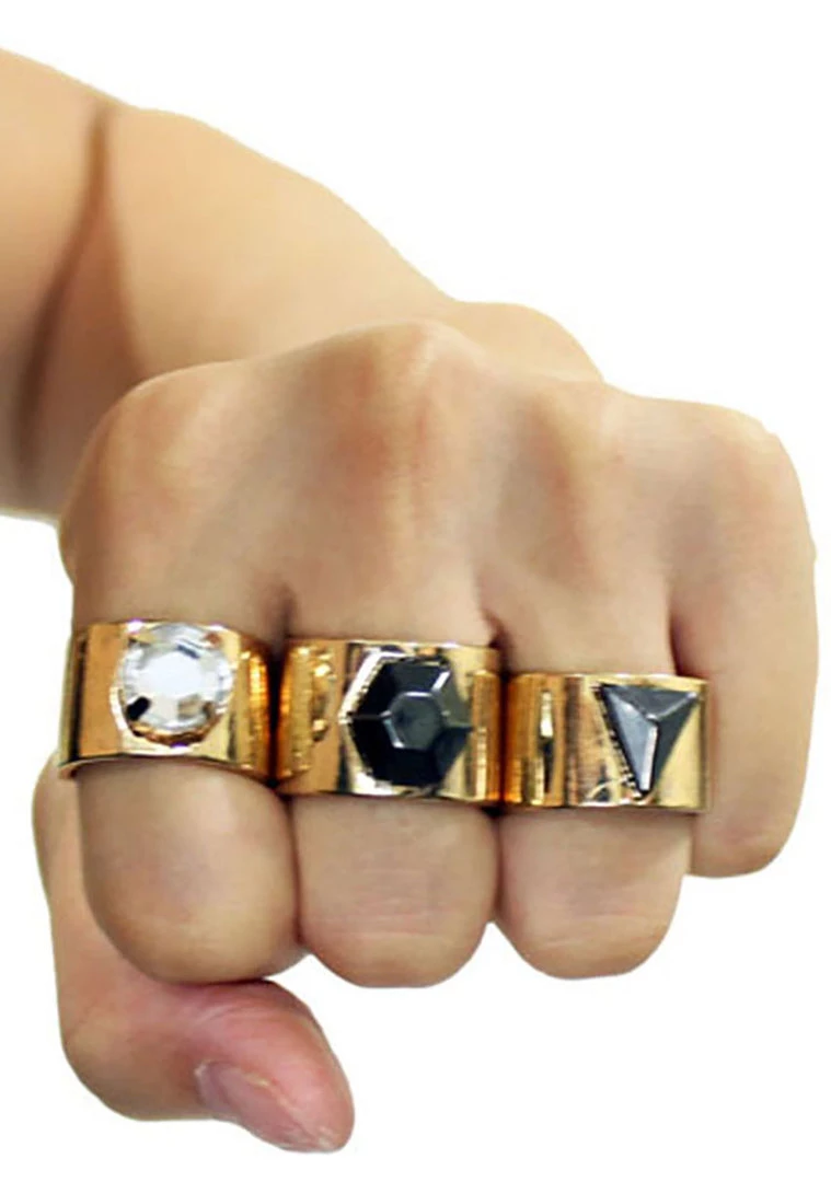 We just love these Stone Cold Rings by 8 Other Reasons. This queen bee Punk Ring feature three bold statement jewels. Metal open back ring adorned with gunmetal contrasting pyramid stud, pentagon diamond stud, and clear rhinestone accents welded to the front. Perfect to wear alone or stacked with other rings.