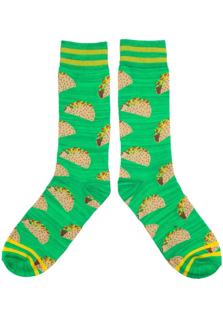 Feed your feet with the Taco Theme 3PK Socks Gift Box Set from Bioworld. This super fun festival accessory features a gift set of three deliciously printed poly-spandex blend party socks that your feet are sure to love. Anyone else’s stomach growling?