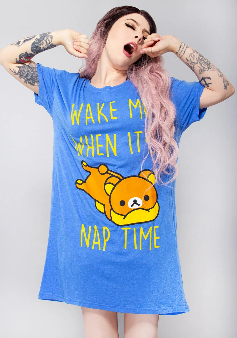 Yawn! Being awake is so overrated! Get some extra beauty rest with the new Rilakumma Naptime Nightgown from Bioworld. This totally comfy nightgown features a cute Rilakumma screen print and knee-length oversize style. #ZzZz