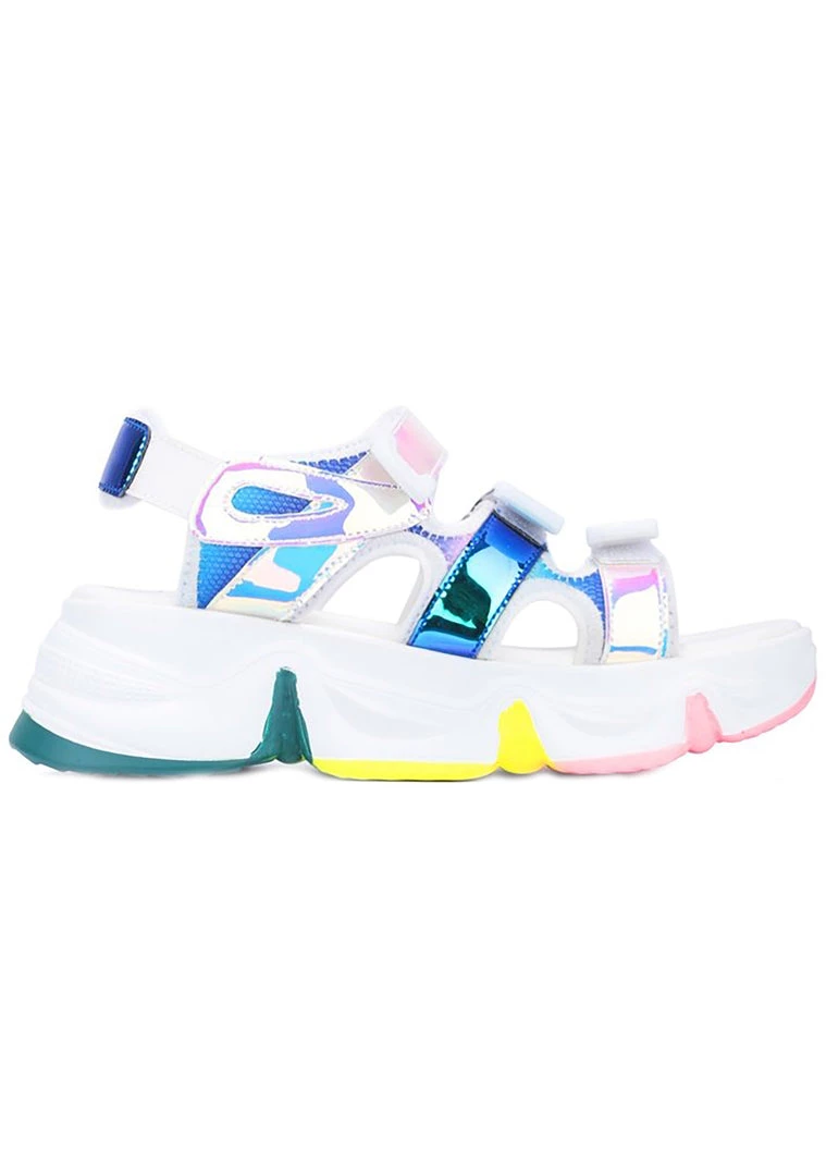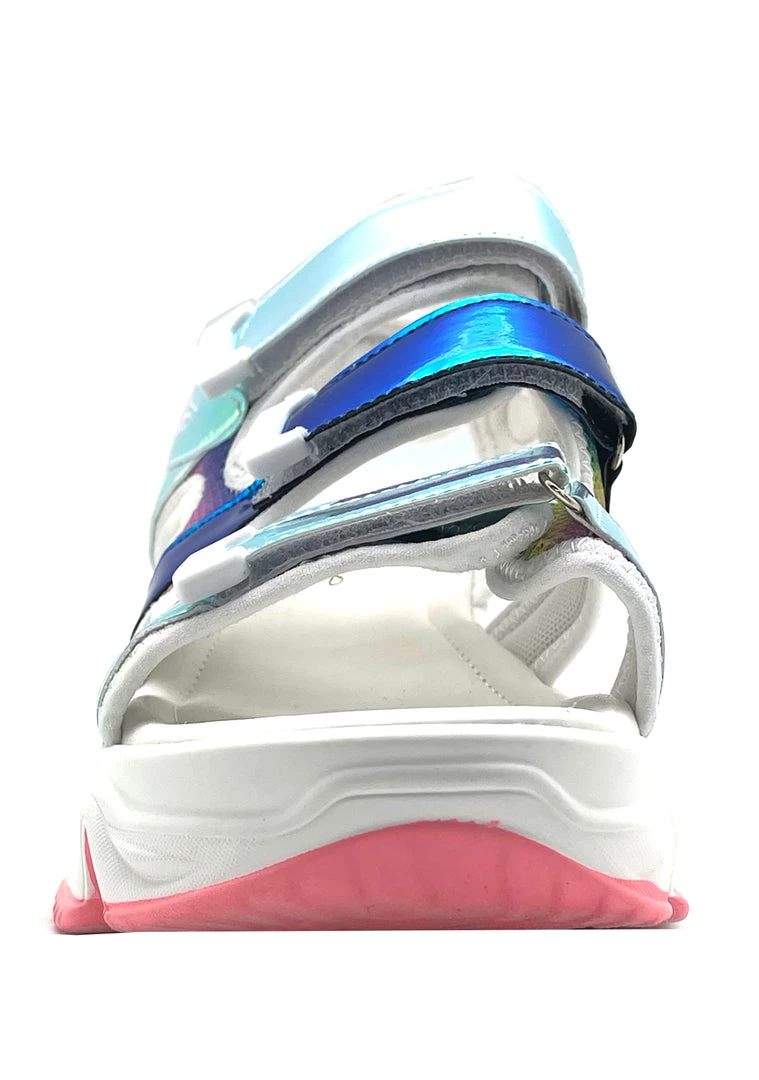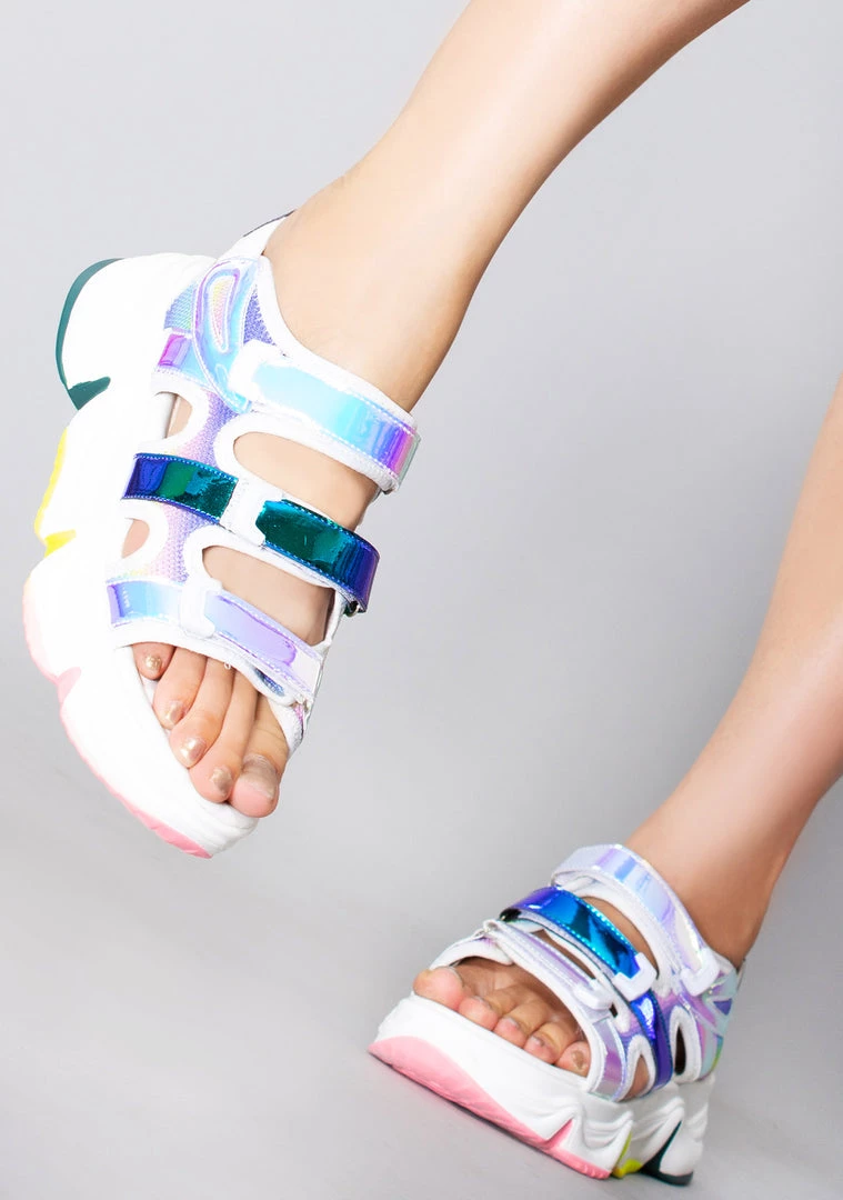 Lose yourself in the Dream Stream Platform Sandals from Cape Robbin. These totally cute platform sandals feature a multi-strapped white nylon upper with holographic contrast details, vegan leather trim, a velcro strap closure, and a major traction sole. #digitaldreamer