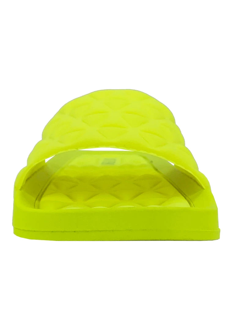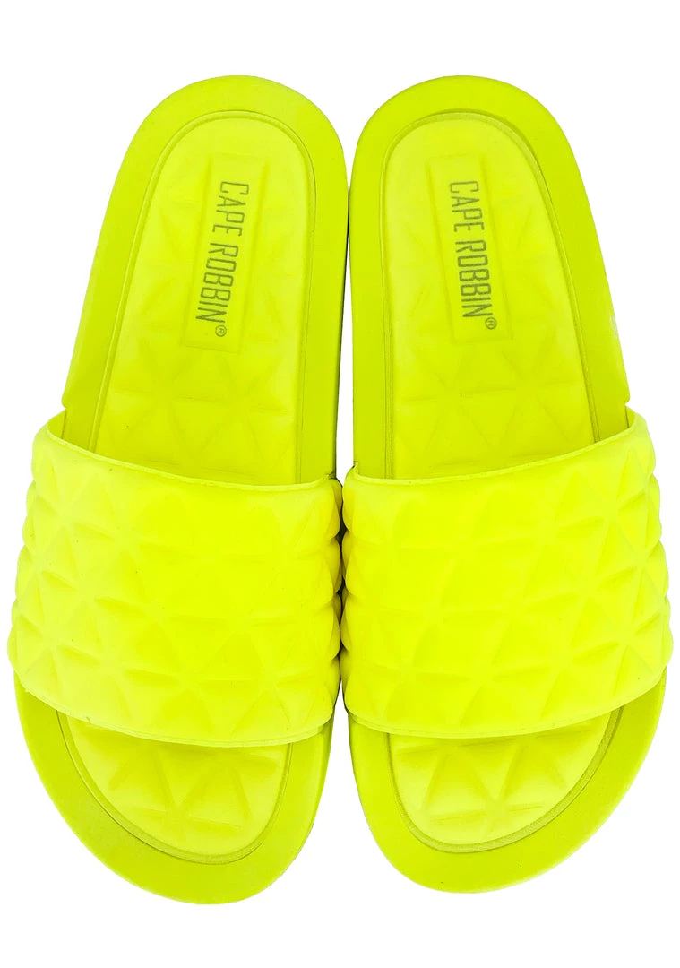 Get ready for the summer pool parties with the Lemon Drop Geometric Sandals from Cape Robbin. These retro festival sandals features a neon yellow colored compressed triangular memory foam upper with matching insole, and rubber outsole. Girl, go out and have some fun!Â