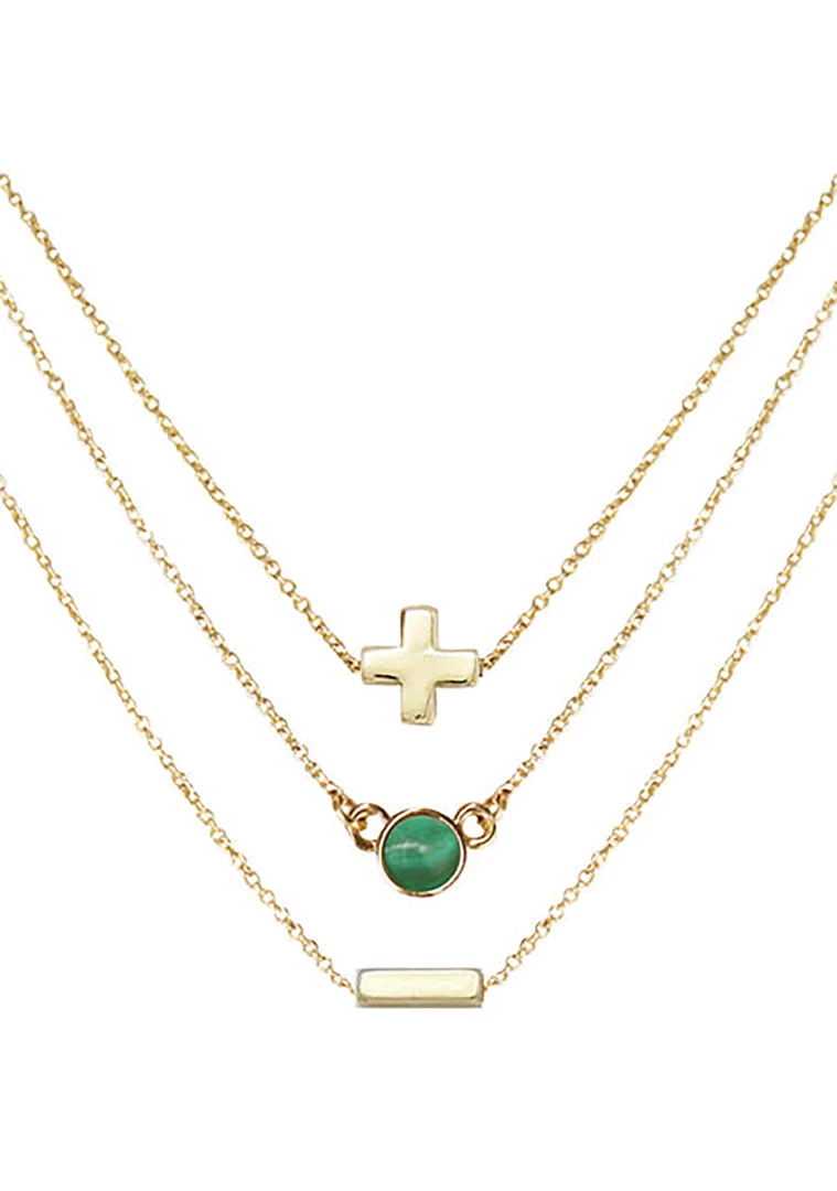 - Wisdom Malachite &18K Gold Plated Necklace Set of 3