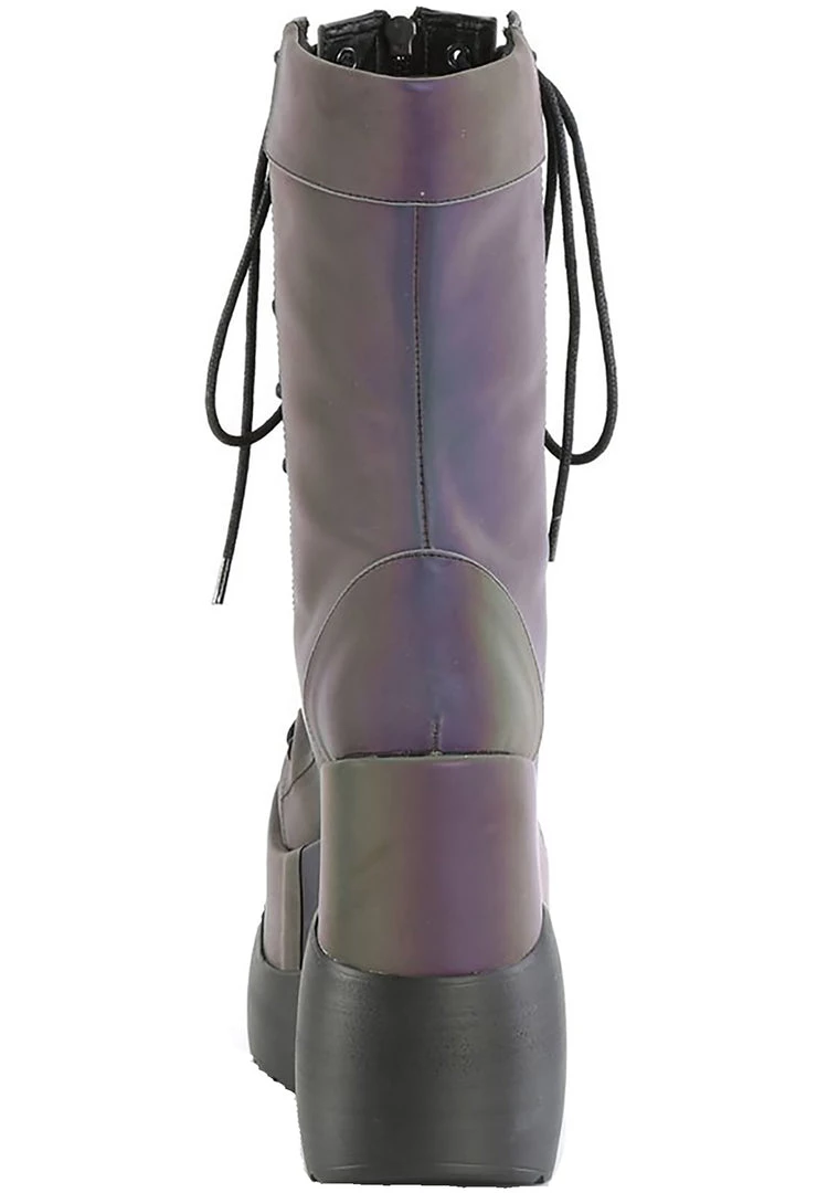 Change the vibe however you want in The Aura Shift Platform boots from Demonia. These dynamic festival boots feature a reflective vegan leather upper with zipper closure up the front and dual side lace-up details. #nobadvibez
