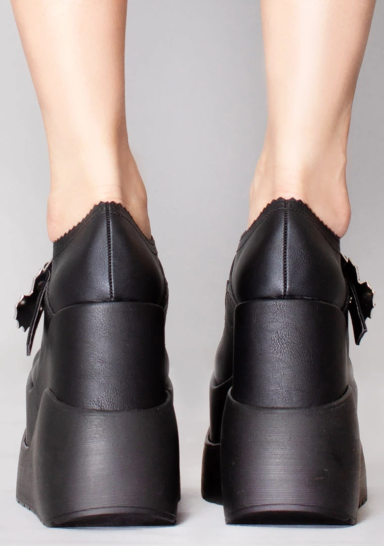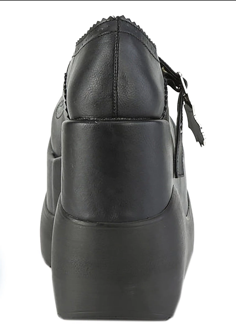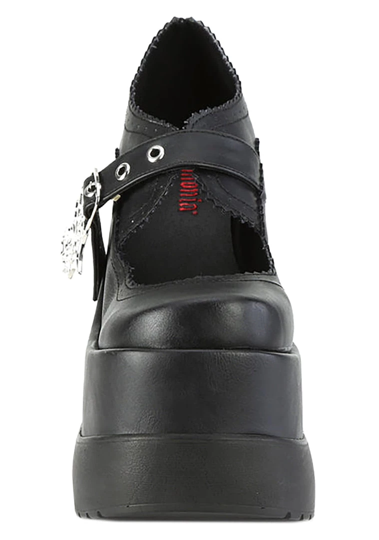 They’ll all cower in your wake with the Miss Fortune Platform Heels from Demonia. These dangerously cute women’s high heels feature an all-black vegan leather outer, web heart buckle strap closure, and extra high platform wedge. With these cute platforms, they better stay on your good side or they’ll never know what might happen.