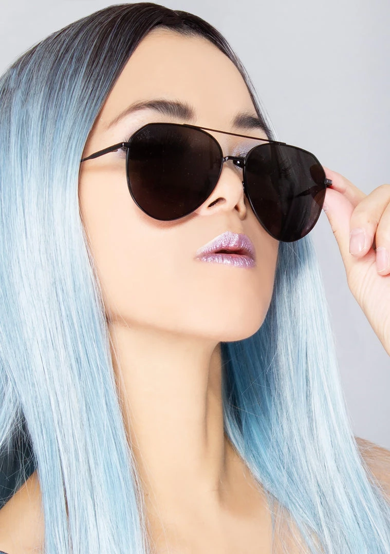 Let’s get down to business with rocking in the Dash sunglasses from DIFF Eyewear. These slick, festival sunglasses feature a lightweight matte black colored aviator metal frame with black lenses polarized lenses, and comfy nose pads. With these badass sunglasses no one will dare get in your way!