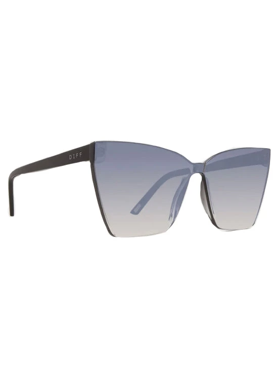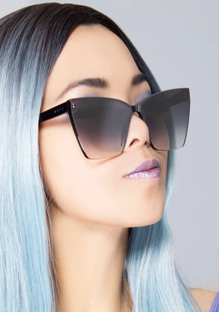 Hit celebrity status with the Goldie Sunglasses in Black & Smoke Flash from DIFF Eyewear. These timeless sunnies feature a striking black flash frameless cat eye lens and stainless steel hinges. These cute sunglasses are sure to get your name on the Walk of Fame!