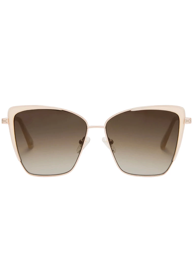 Lead the Rebellion in style with the Princess Leia Sunglasses in General Gold & Brown Gradient from DIFF Eyewear. These really fabulous festival sunglasses feature a rose gold metal cat-eye frame, a Rebellion symbol on the temples, and embossed detailing on the stems. With these cute sunglasses, victory is yours!