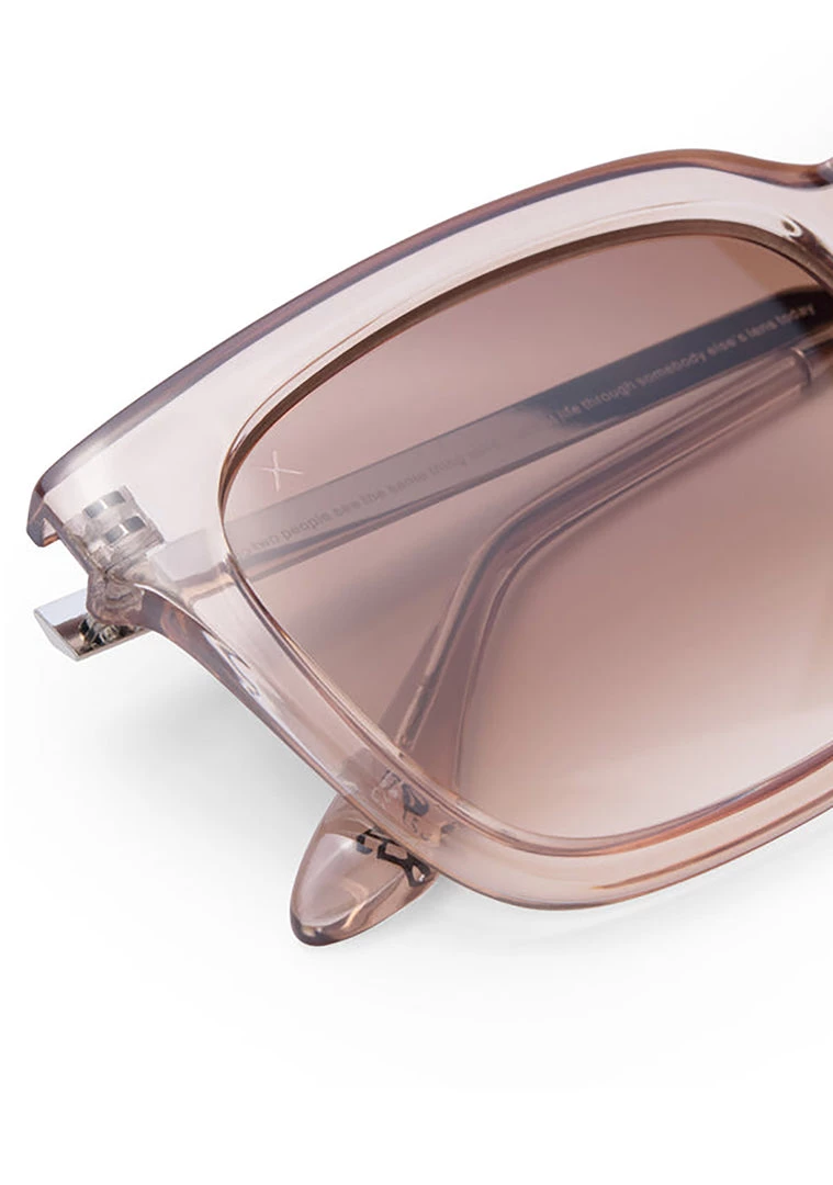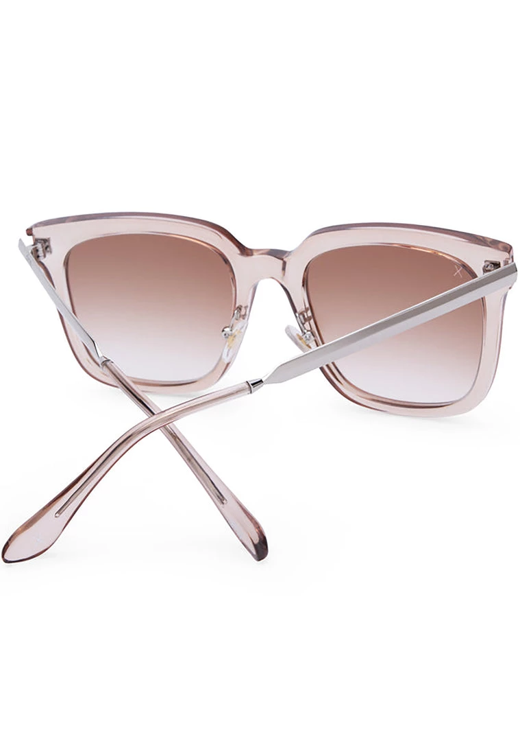 Go on and show em’ what you’ve got with the Becky G 333 Sunglasses from Dime Optics. These super sexy festival sunglasses feature a clear taupe bold square frame with sienna gradient lenses and the Dime logo on the stems. With these cute sunglasses, they’ll want what you’ve got!