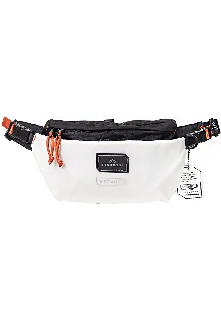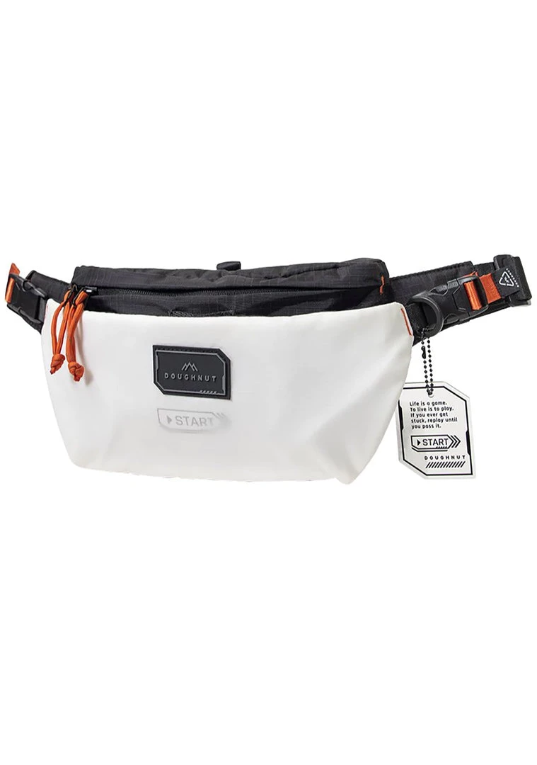 The Gamescape Series Dagger Fanny Pack in White from Doughnut Official is the best perk for any outfit. This totally cool festival fanny pack features a white water-resistant exterior with a zippered main compartment, snap button flap front pockets, and adjustable belt strap. This cute bag will max out your look!