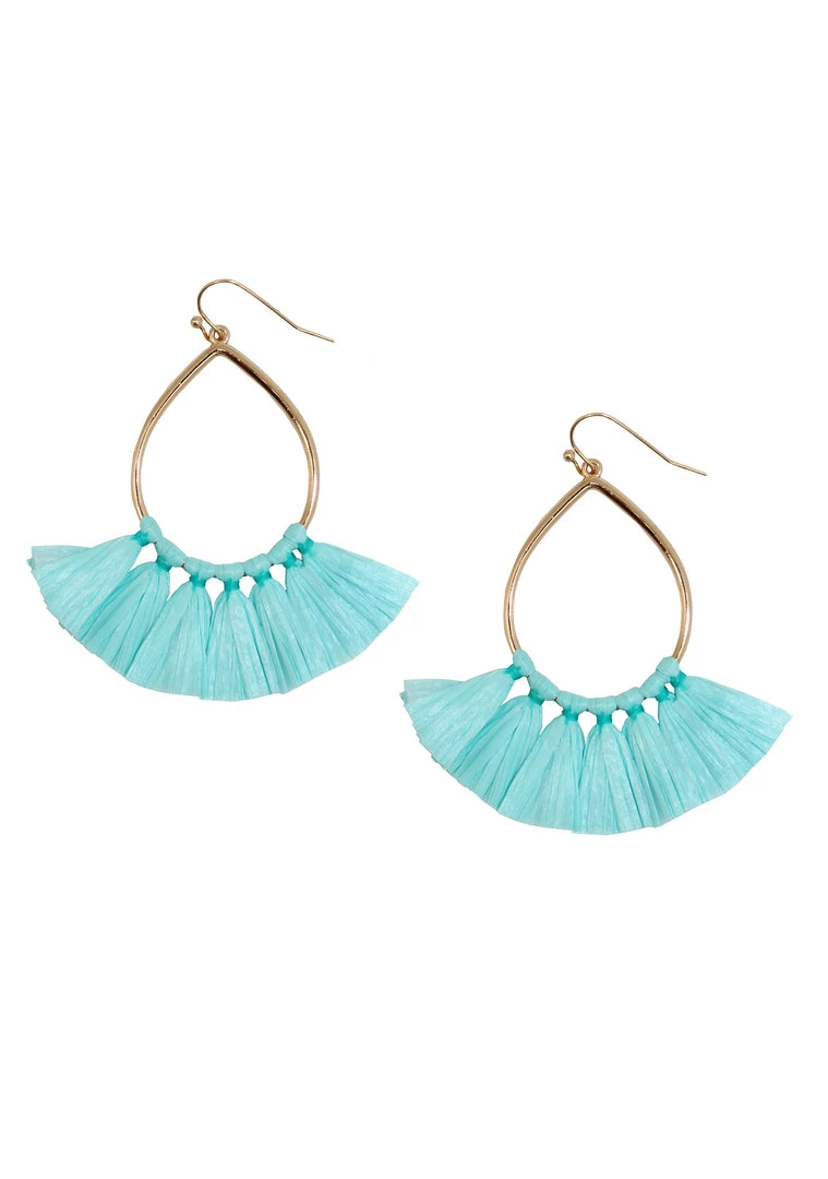 Whether it’s a vacation or daycation, you’ll be ready for whatever when you wear the Cha Cha Earrings from the Paradise Collection by Erimish. These super cute punk earrings feature a fun turquoise colored fan design on gold toned teardrop shade hoops.