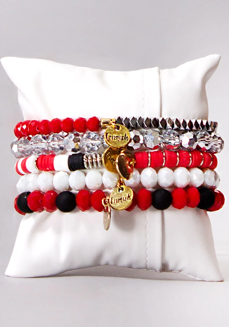 It’s your turn to rule with the new Queen Of Hearts Bracelet Stack from Erimish. This fabulous stack features 5 festival bracelets composed of an array of beads in red and black, and glittering silver accents. #offwiththeirheads