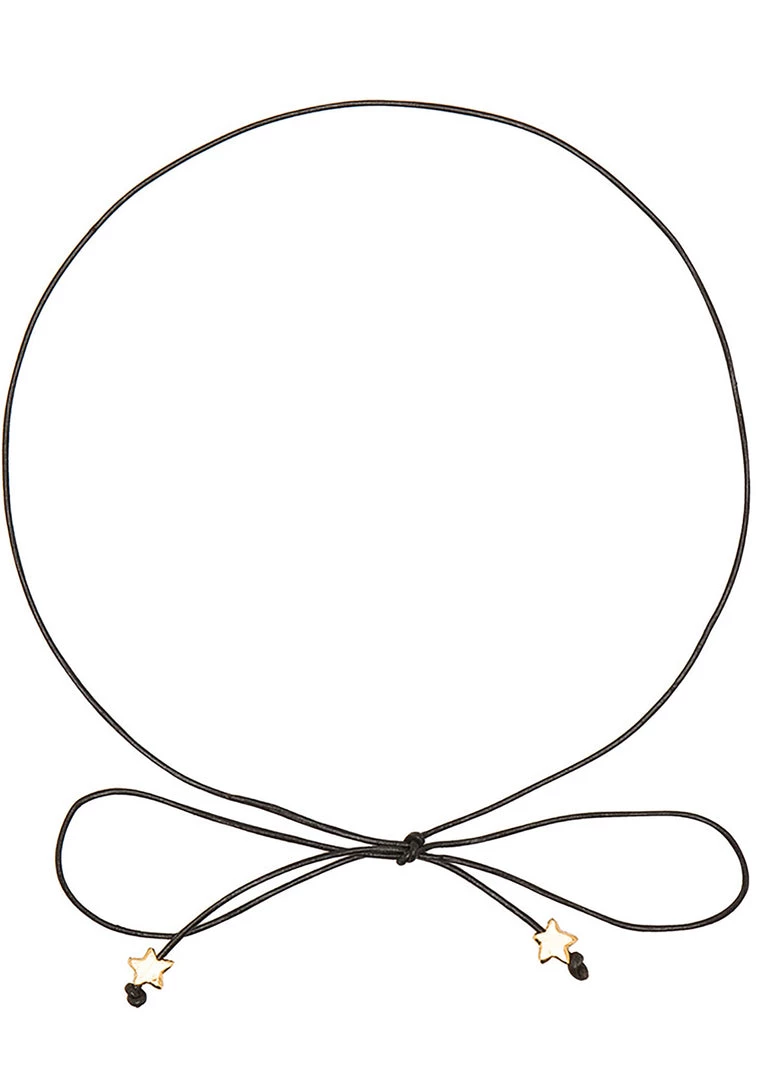The Hollywood celebrities are going crazy for these Disco Fever Star Bowtie Choker from Frasier Sterling. This cute Rave Choker features black leather cord bow tie choker with gold plated star beads finished at the ends.