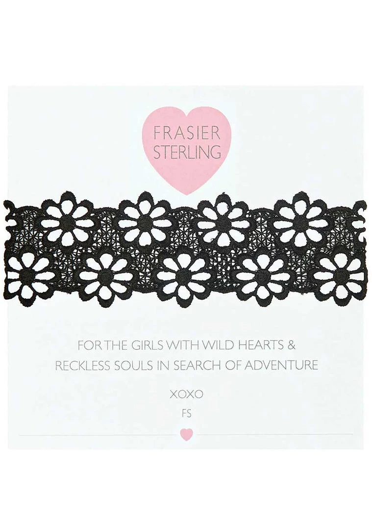 Every girl needs to get their hands on these dainty chokers from Frasier Sterling. The Lacey Daisy Festival Choker features a black colored cotton lace daisy choker with gold plated lobster clasp closure.