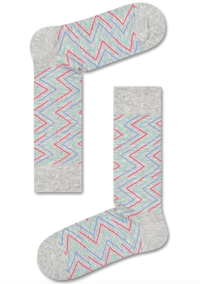 Keep up the festive spirit with these Ziggy socks from Happy Socks. These playful Festival Socks feature high-quality combed cotton in heather grey colored base with all-over zig-zag pin stripe pattern.