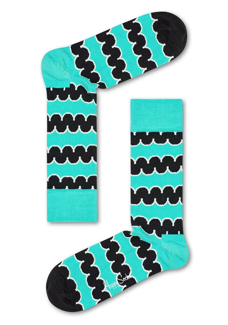 Dance yourself into this colorful pair of socks by Happy Socks. This energetic set features an electric pairing of aqua and black colors in a wild design of lines. Perfect to use as a gift or be bold to rock at the office!