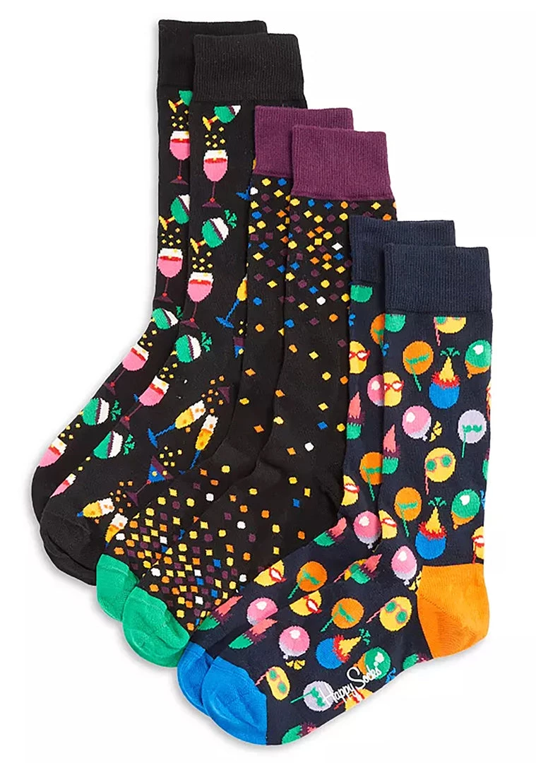 Let your feet party in comfort with the Celebration 3PK Gift Box Set from Happy Socks. This fab party sock set features 3 ultra-comfy pairs of socks in a variety of fun celebratory prints. The party don’t start until your feet walk in with these socks!
