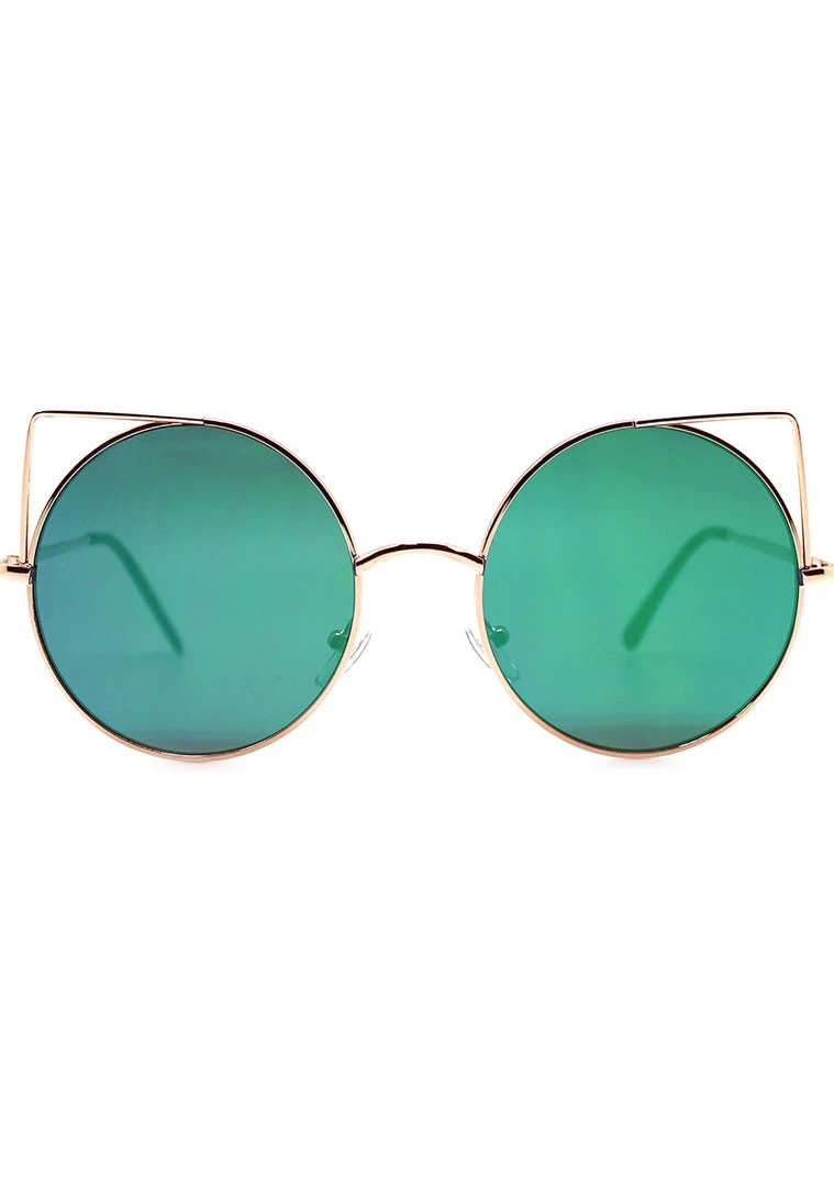 Look like the killer queen you are in the LASR Poison Ivy Cat Eye Sunglasses. These savage festival sunglasses feature an ultra-thin round metal frame with pointy cat-eye detail, comfy nose pads, and colored green mirrored flat lens. One look in these stunning rave sunglasses will have them itchin’ for ya.