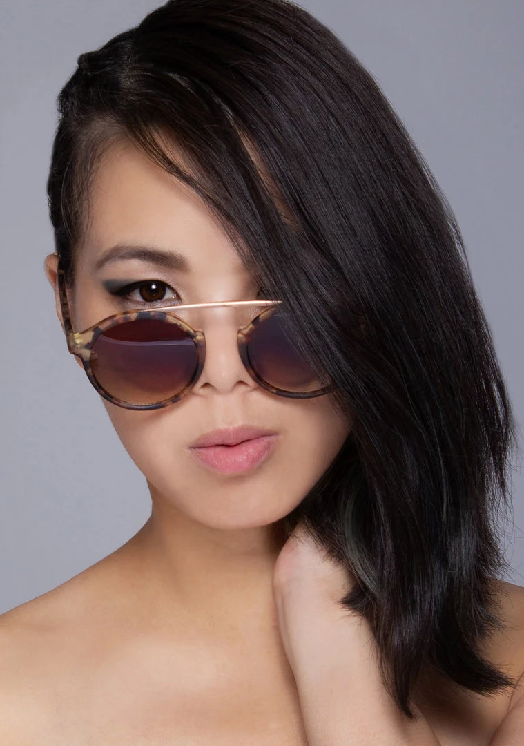 Keep it slick and SLAY when wearing the LASR Stealth Moves Sunglasses. These party ready, pantos style sunglasses feature an ultra-thin matte polycarbonate round frame with unique metal upper crossbar detailing and gradient smoke colored lenses. ‘Cuz you move under the radar babe.