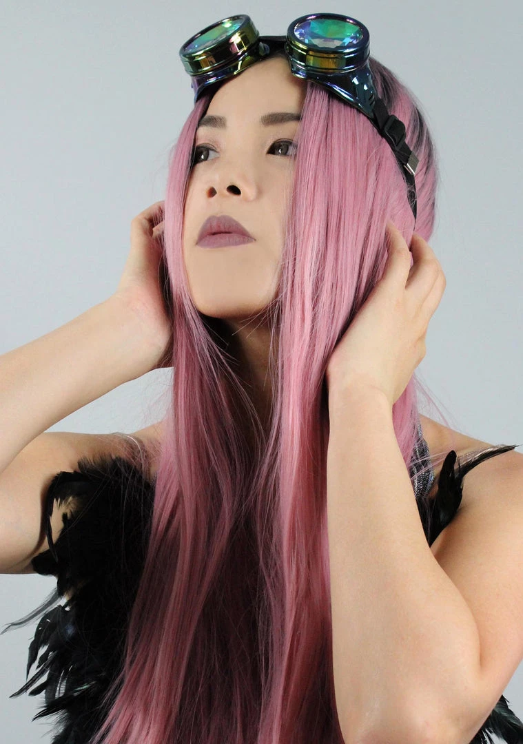 Give your best festival look that extra edge when you wear the Celestial Kaleidoscope Goggle from 7 LUXE. These ready-to-go steampunk goggles festival sunglasses features an iridescent colroed durable plastic frame with high quality kaleidoscope lens, and adjustable elasticated headband.