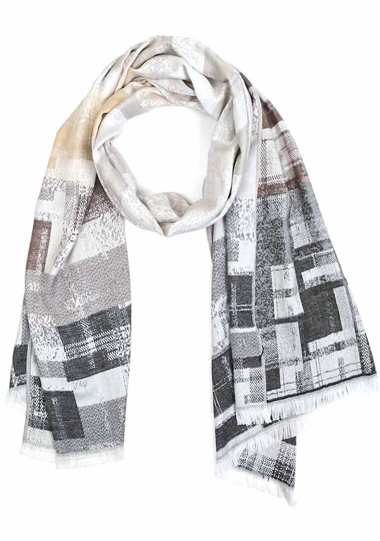 Transform into a toxic trance with the LASR Steampunk Storm Scarf. This futuristic festival scarf features a geometric color block screen print on super soft viscose fabric and frayed hem detailing.Â