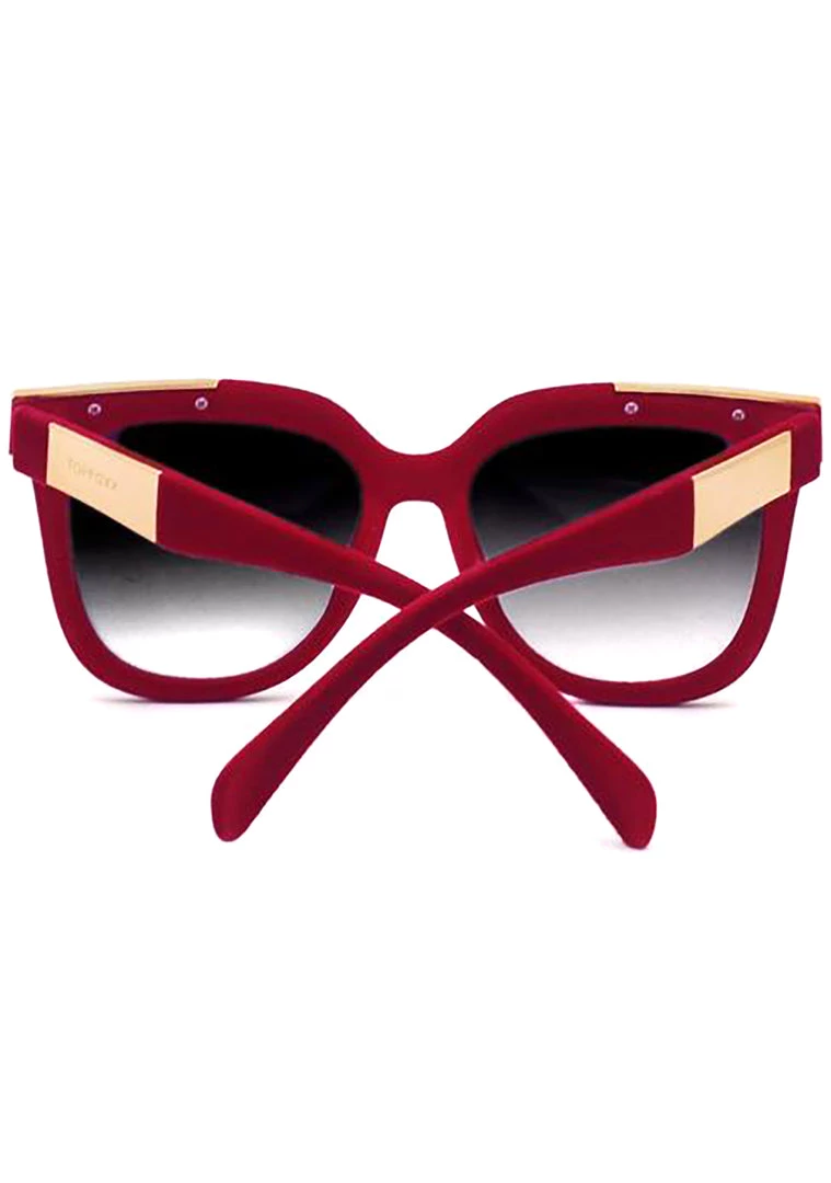 The red carpet is wherever you are with these new Coco sunglasses from Topfoxx. These ultra glamorous rave glasses feature a red velvet frame, black fade lenses, and gold plating details with iconic Topfoxx logo. Now you are the star of the show.