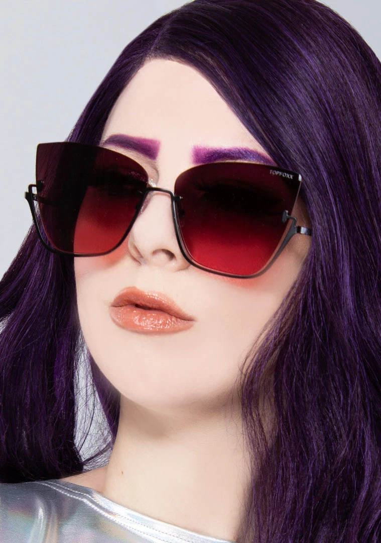 The new Vixen sunglasses from Topfoxx are for only the fiercest boss babes. These super sexy rave sunglasses feature a black under lens frame, black to red fade lens, and Topfoxx logo on the stem. Flex that attitude and show them who’s boss.